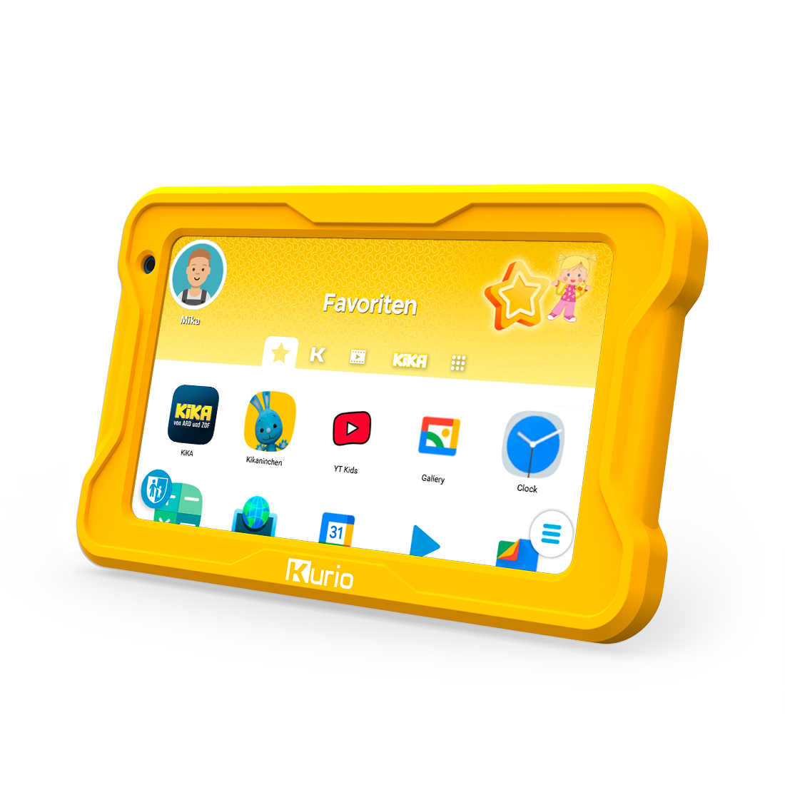 Robust, stoßfest und mit integriertem Standfuß ist das Kurio KiKA Tablet der ideale Begleiter für Lernen, Spielen und kreatives Entdecken – Tag für Tag.