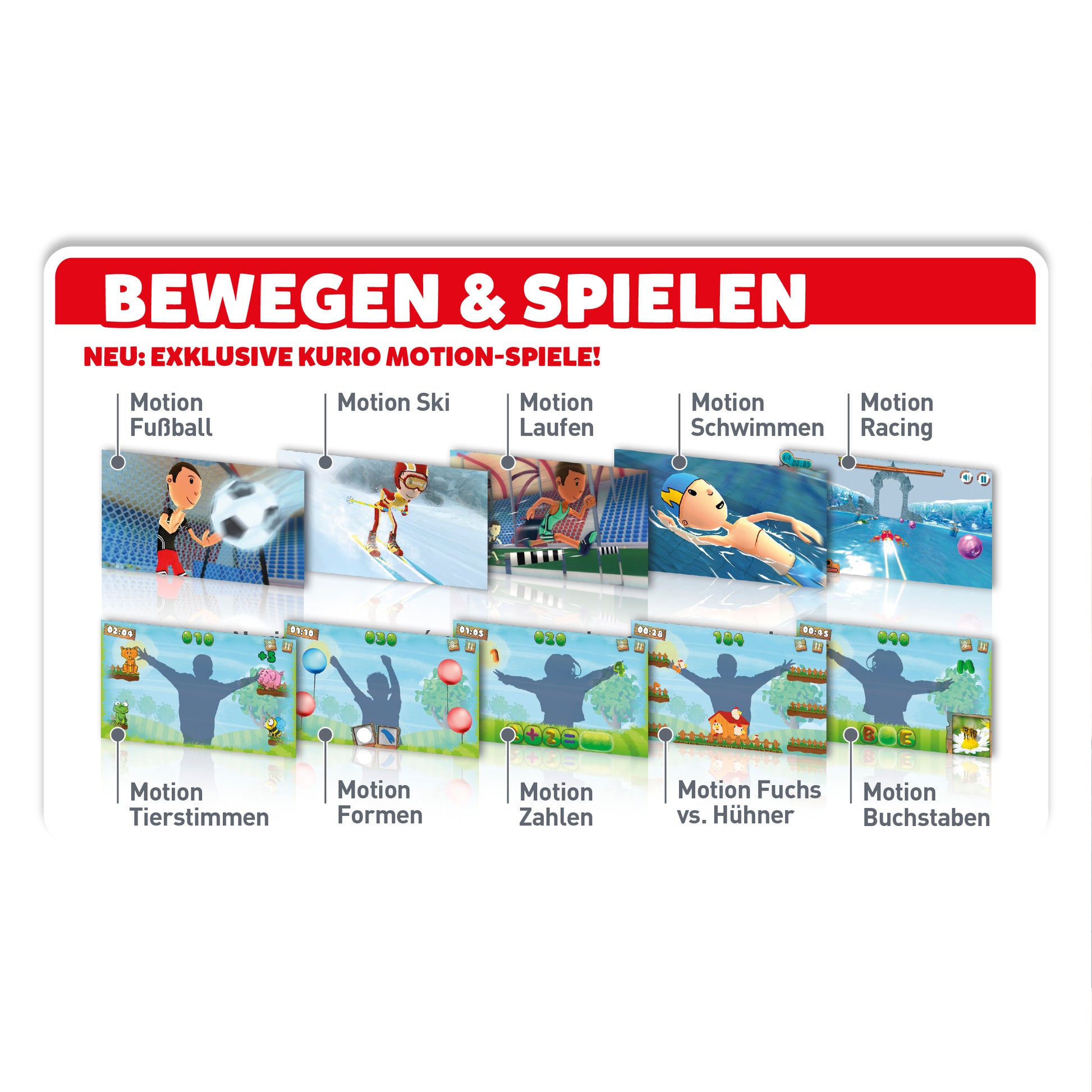 Die intuitive, kinderfreundliche Bedienung sorgt dafür, dass kleine Entdecker sofort loslegen können. Und mit den 10 exklusiven MOTION-Spielen, die Bewegung ins Spiel bringen, bleibt der Spaß garantiert nicht nur auf dem Bildschirm!