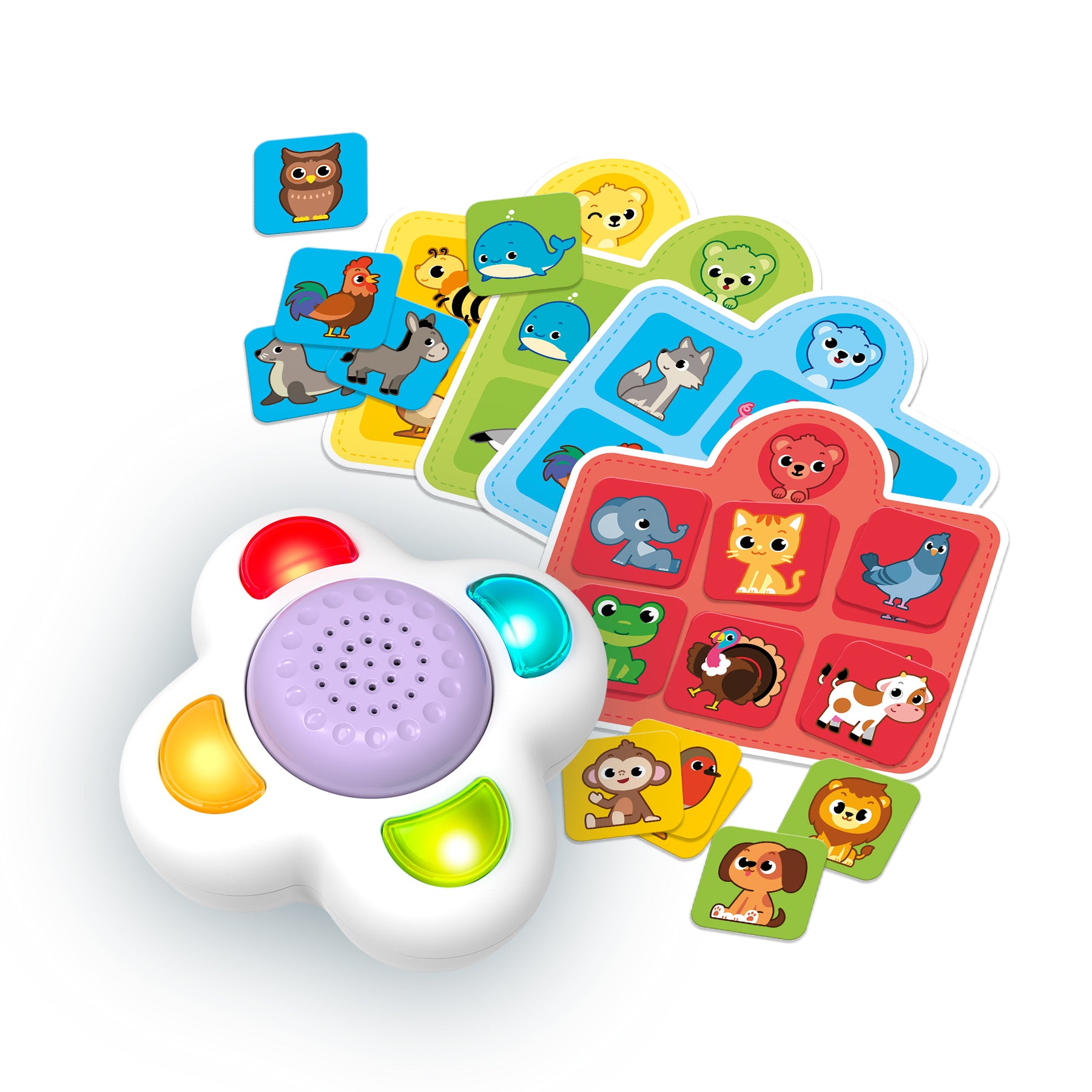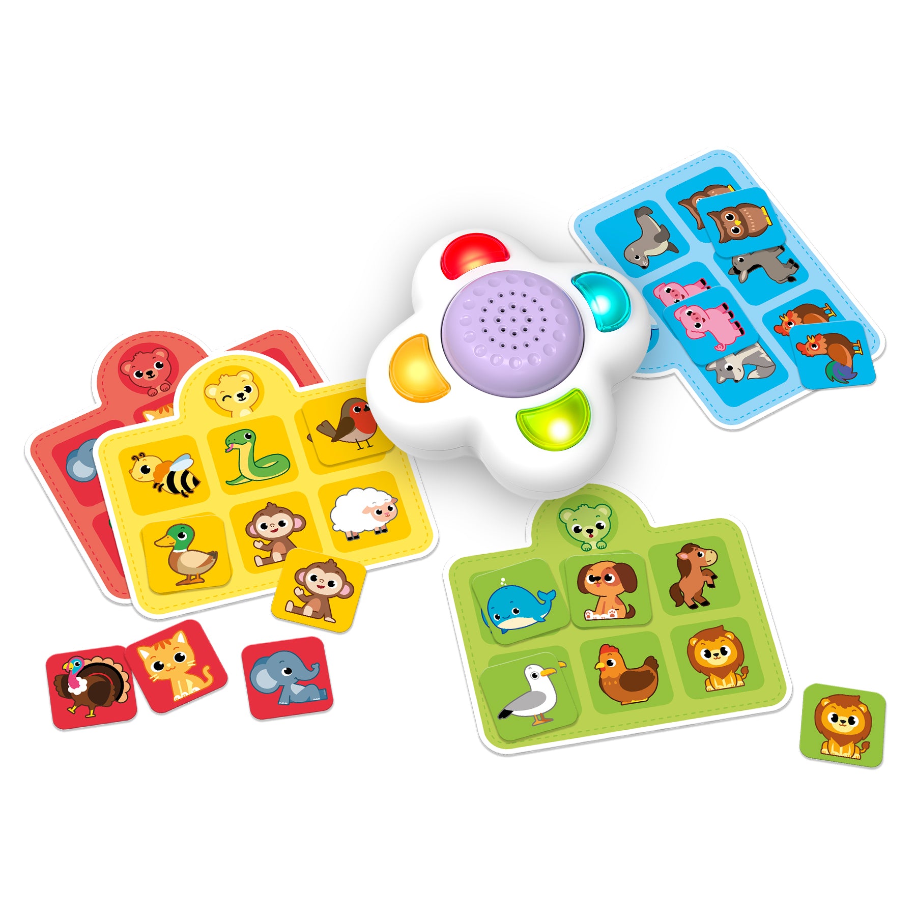 Dive into the exciting world of Bingo animals, where you can discover the Jungle Beat! This interactive version of the classic bingo game features an electronic sound device, 4 animal boards, and 24 tokens, making it perfect for playing with family, friends, or on your own. Kids will learn to recognise various animals and their associated sounds, promoting social interaction and collaborative play while having a blast. Bingo Zoo combines fun with educational value, making it an engaging activity for children as they explore the sounds of the animal kingdom!