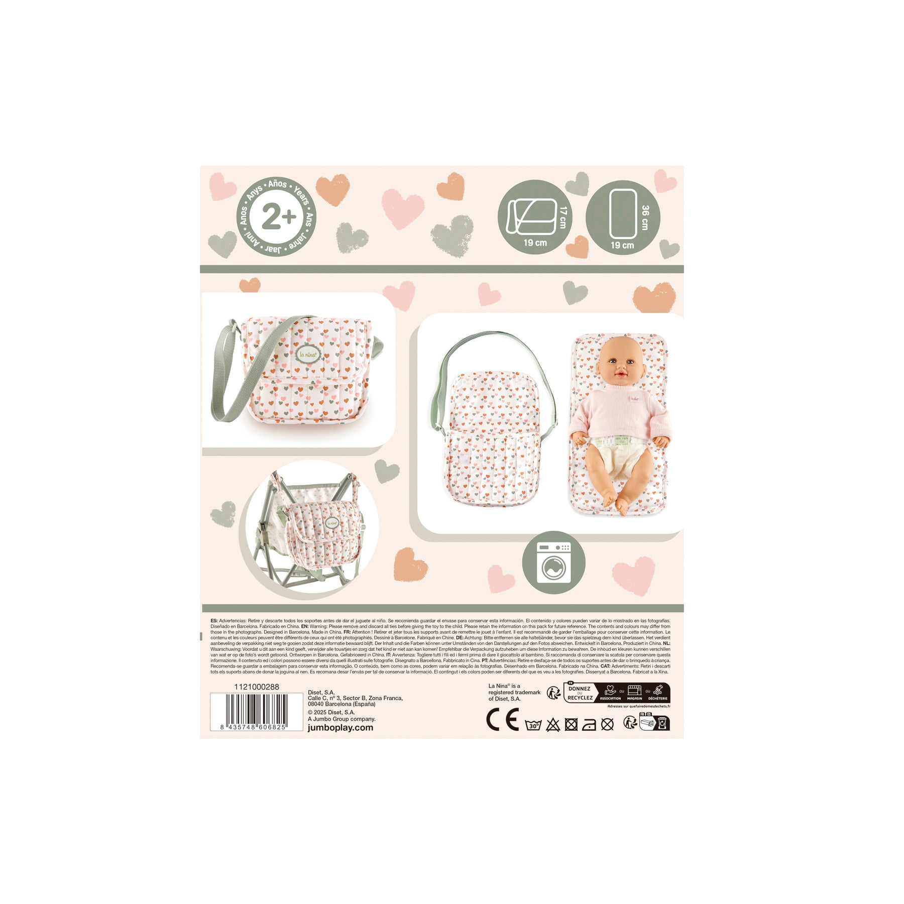 Bolso con cambiador perfecto para llevar a cualquier parte. Se puede colgar de la silla o del cuco. La tela es lavable. Práctico y funcional para el juego. Recomendado a partir de 2 años.