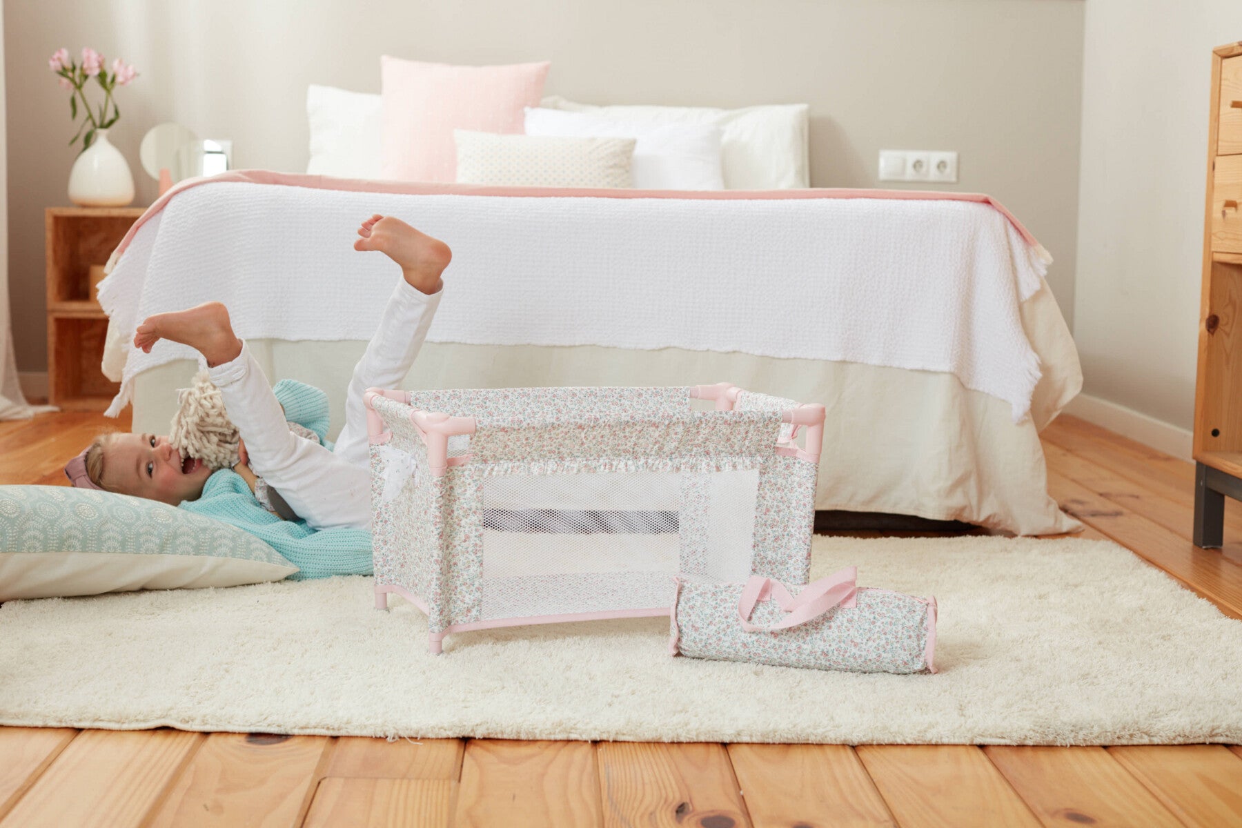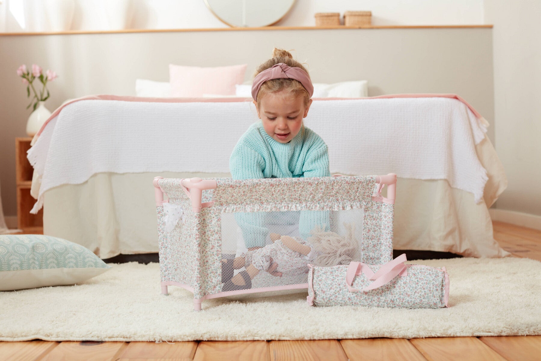 Ya puedes llevarte de vacaciones a tus muñecas con la cama de viaje Violeta en flores, plegable y muy práctica. Incluye bolsa para guardarla y para su fácil transporte. Ideal para muñecas de 30 a 52 cm. Estructura de metal y plástico en color rosa. No ocupa espacio. Acabados de calidad, muy sólida y estable. A partir de 3 años. Juguete de imitación.