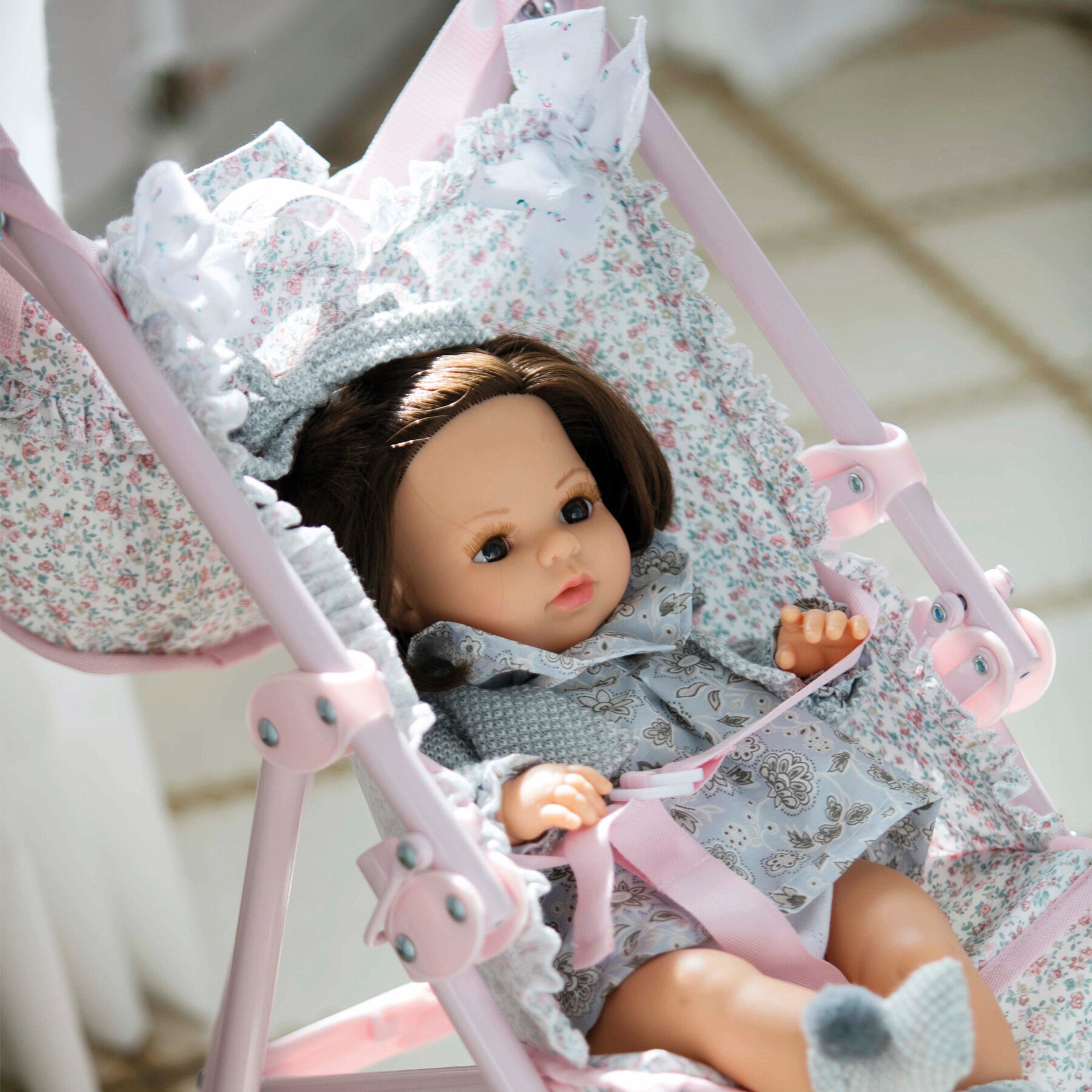 Saca a pasear a tus muñecas con la sillita de paseo Violeta grande con flore, plegable con sistema de tijera, muy práctica. Si tienes de 5 a 7 años esta sillita es la adecuada para ti. Ideal para muñecas de 36 a 52 cm. Estructura de metal lacada en color rosa. Se pliega fácilmente y no ocupa espacio, Acabados de calidad. Sólida y estable. Juguete de imitación.