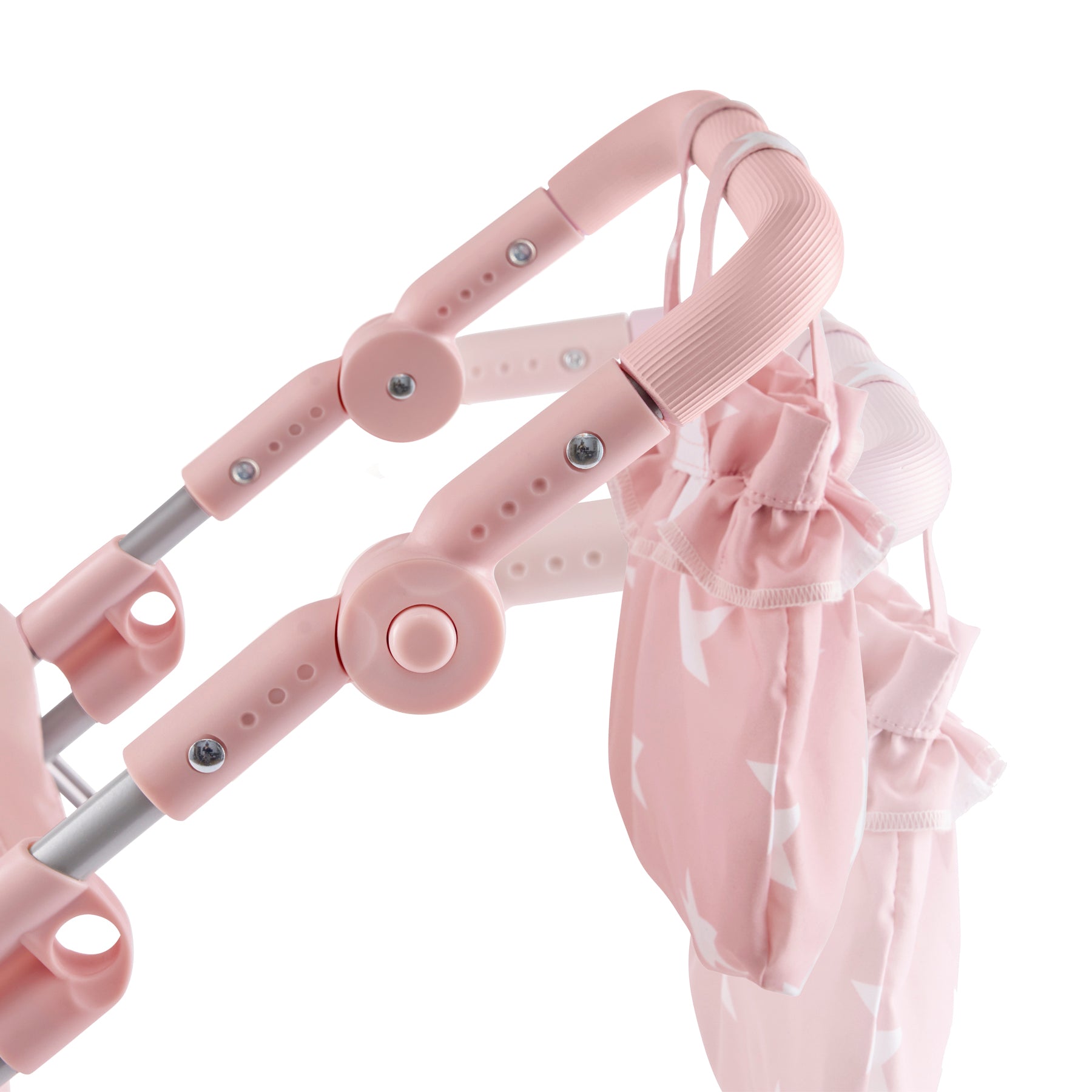 Carrito cuco de paseo Carlota fácil y rápido de montar, con estructura metálica plegable y resistente. Dispone de dos posiciones y un cómodo manillar regulable para adaptarse al crecimiento del niño. Incluye bolsa canastilla de paseo y es apto para muñecos de 30 a 42 cm. El bolso, el cuco y el bolsillo inferior se pueden lavar. Altura de 65 cm. Recomendado para niños a partir de 3 años.