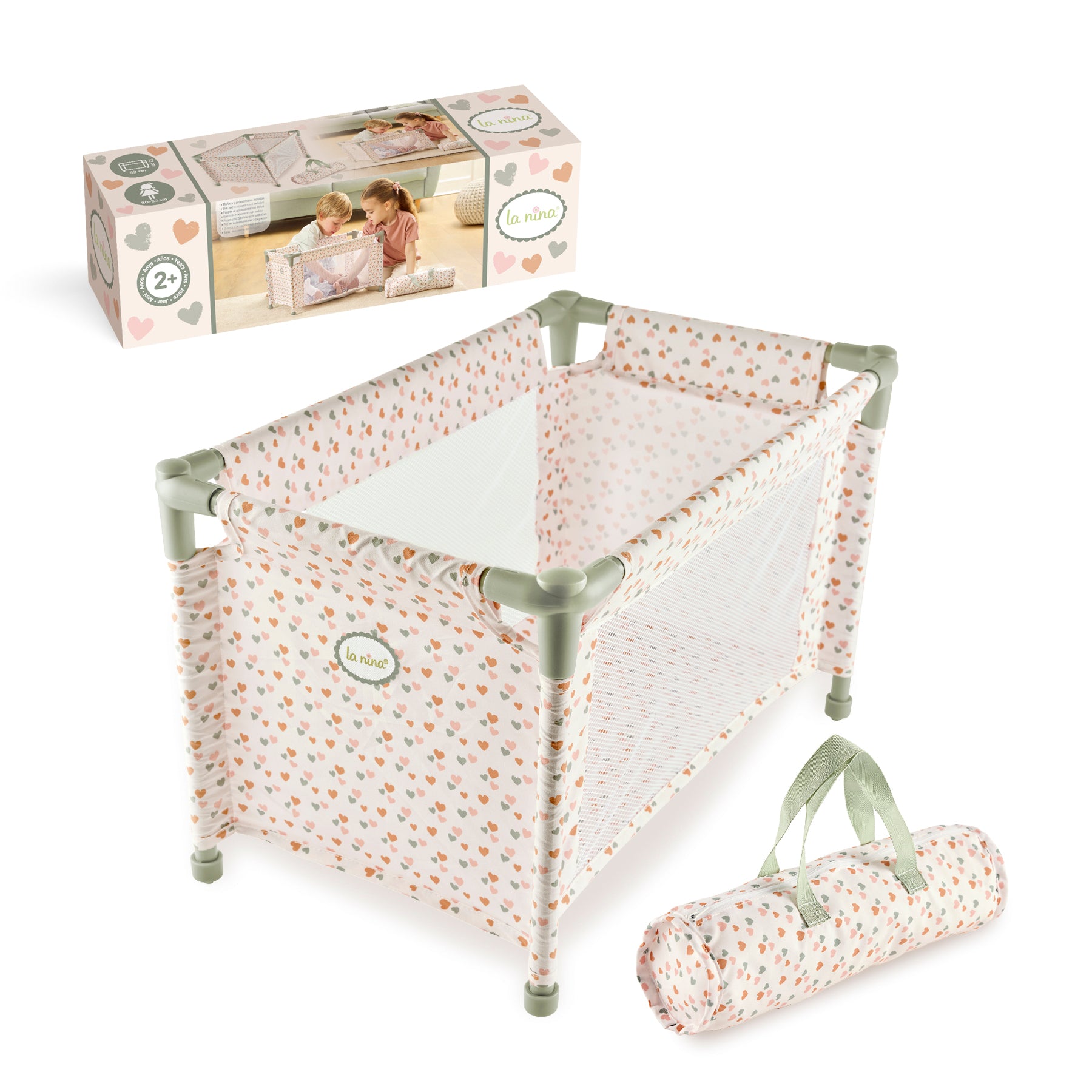 La cuna de viaje Amanda es práctica y fácil de montar, ideal para llevar a todas partes. Incluye bolsa de transporte y se puede lavar a máquina. Apta para muñecos de 30 a 52 cm. Recomendada a partir de 2 años.