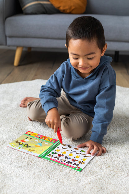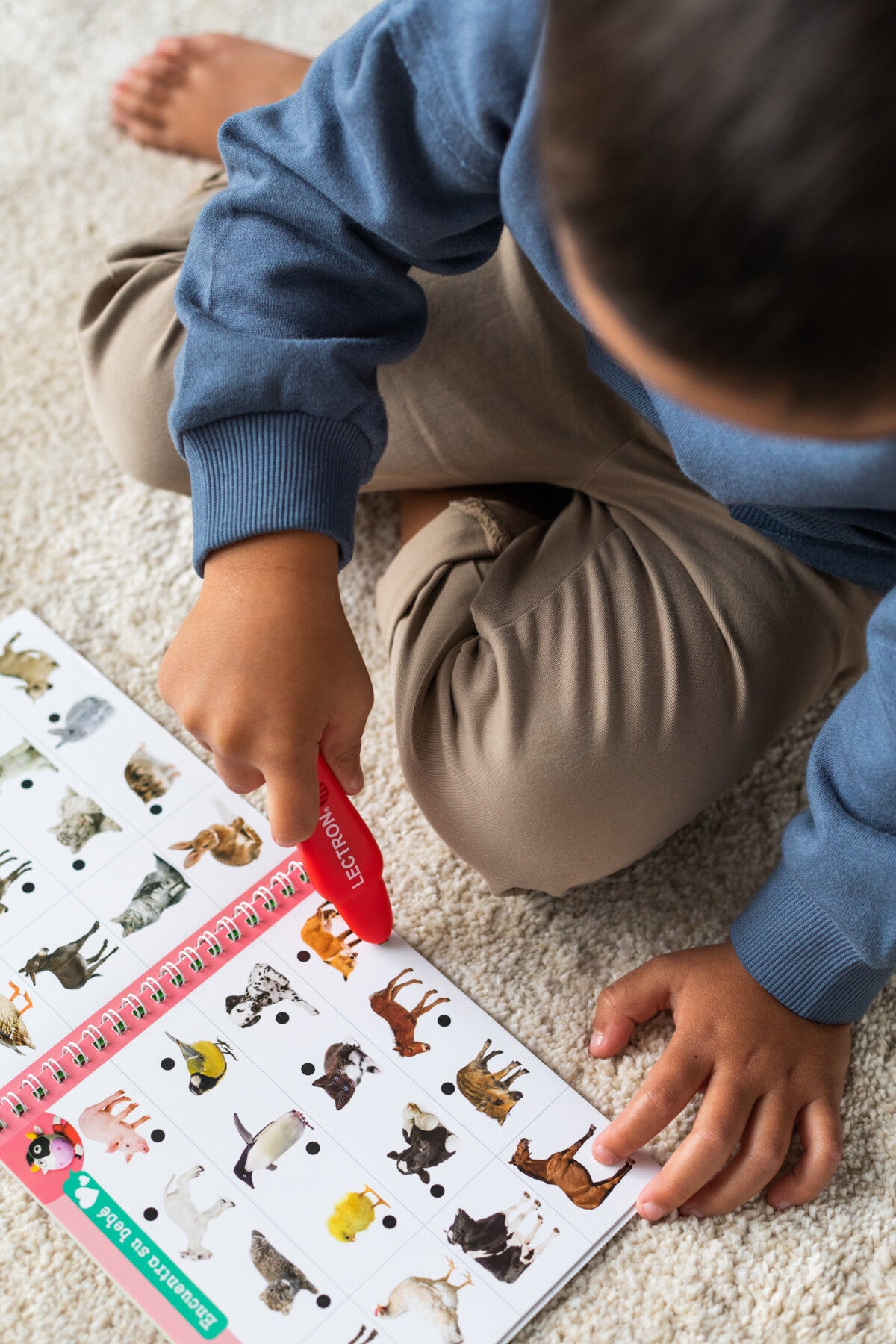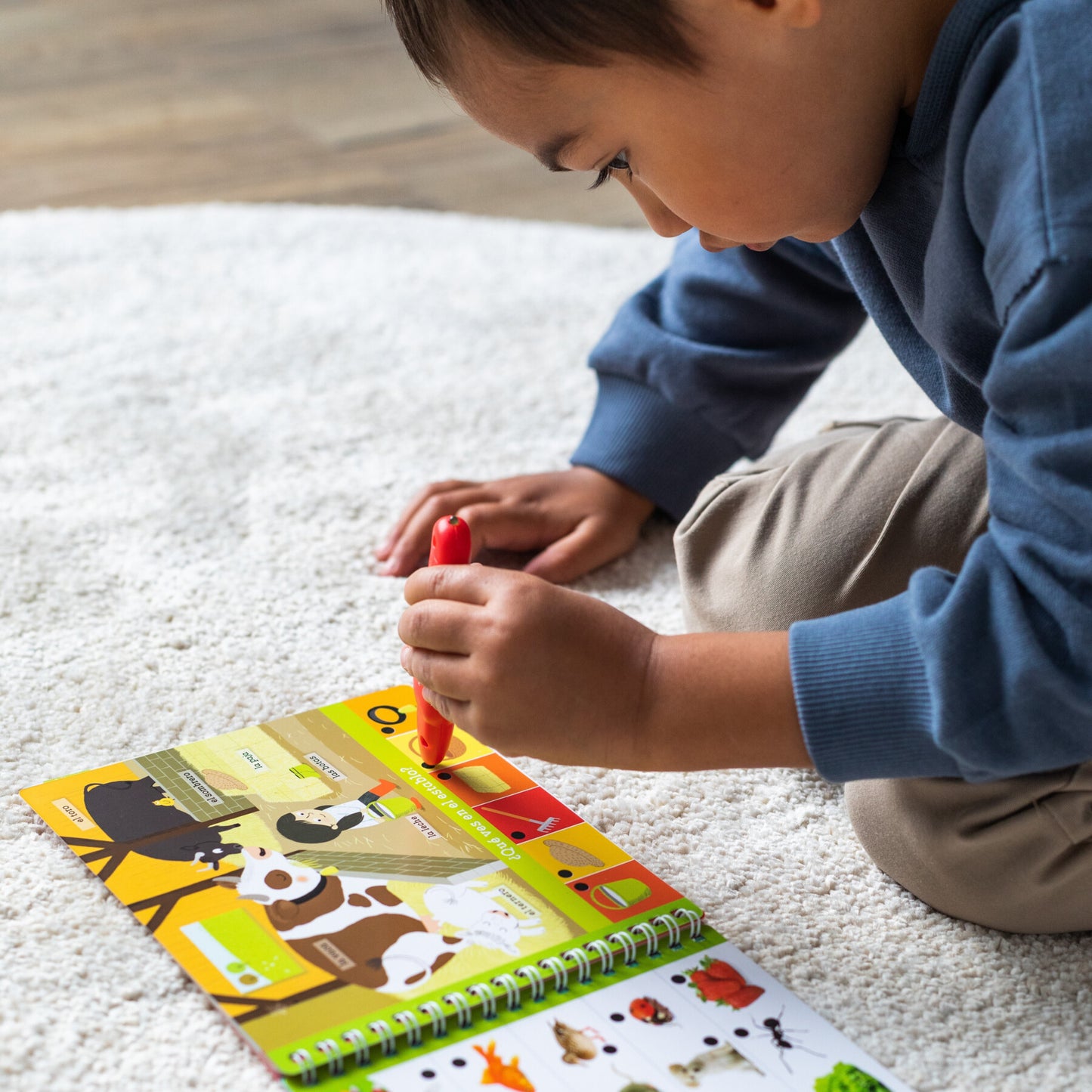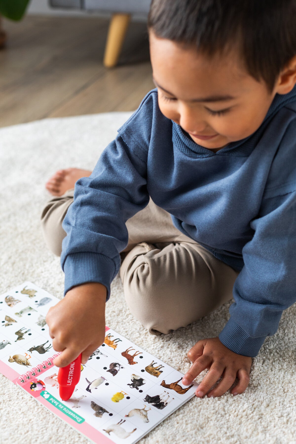 Al seleccionar la respuesta correcta con el lápiz mágico, la luz superior del lápiz se enciende; lo que lo hace un sistema autocorrectivo y que el niño pueda comprobar si está respondiendo bien.