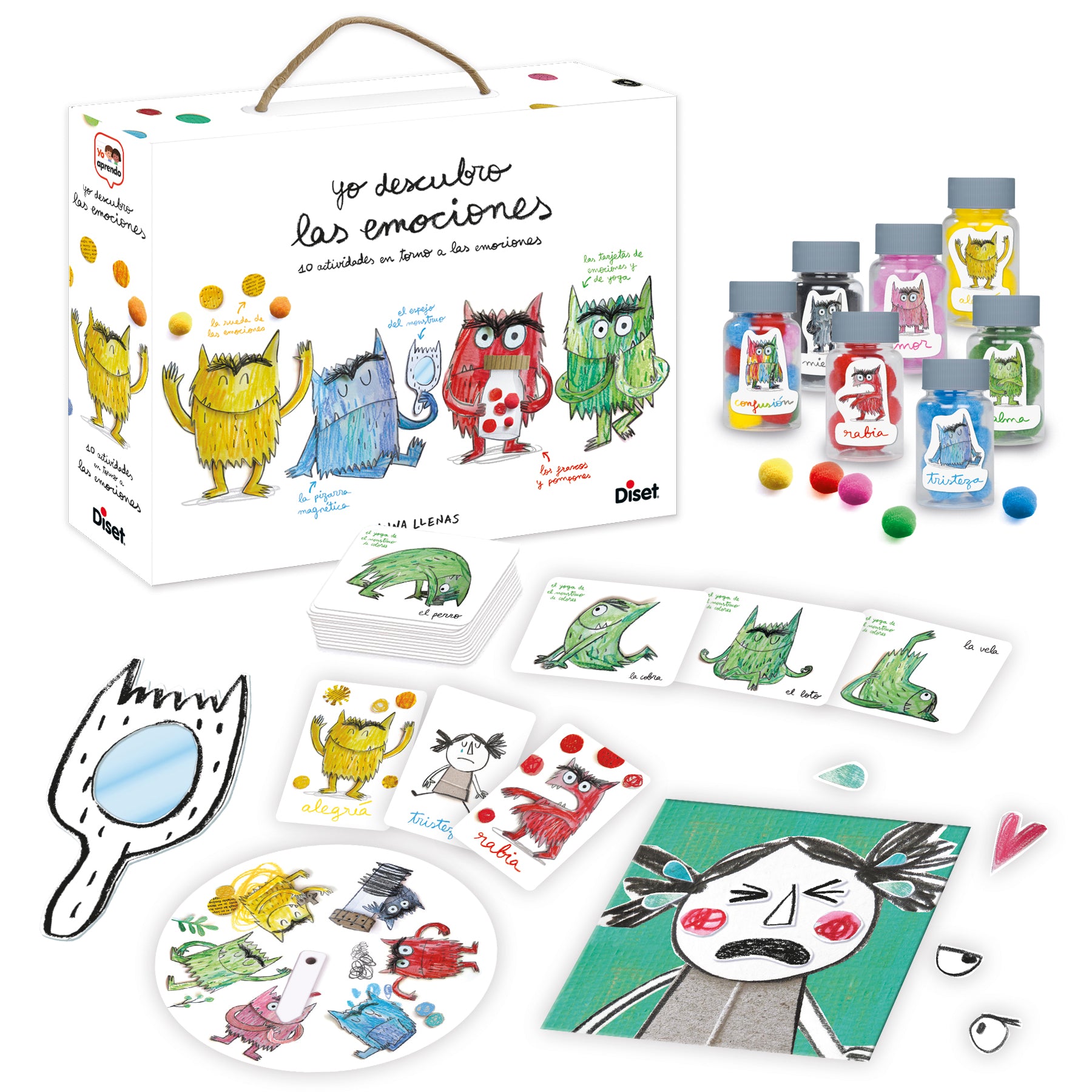 Juego educativo basado en el libro «El Monstruo de las emociones» de Anna Llenas. Yo descubro las emociones es un juego educativo que ofrece a los niños 10 originales actividades para descubrir, nombrar y dominar las diferentes emociones; como por ejemplo la ira, el miedo, la tristeza, la serenidad, la alegría y el amor.