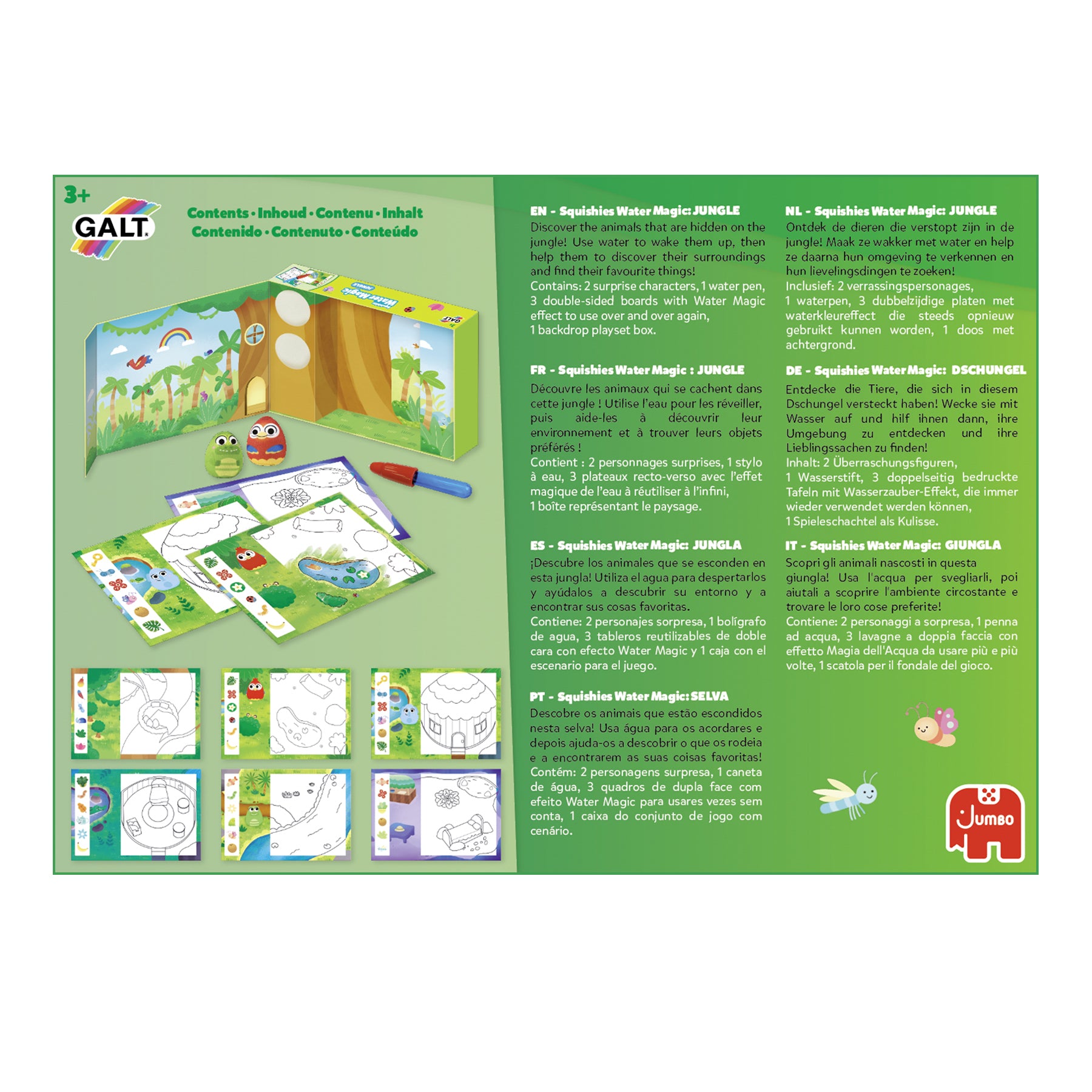 ¡Adéntrate en el corazón de la jungla con el set de juego Squishies Water Magic Jungle! Los niños descubrirán ilustraciones coloridas y sorpresas ocultas. Usando el bolígrafo de agua especial, los jóvenes exploradores podrán revelar colores impresionantes y adorables criaturas de la jungla ante sus ojos, creando una experiencia divertida y sin desorden.