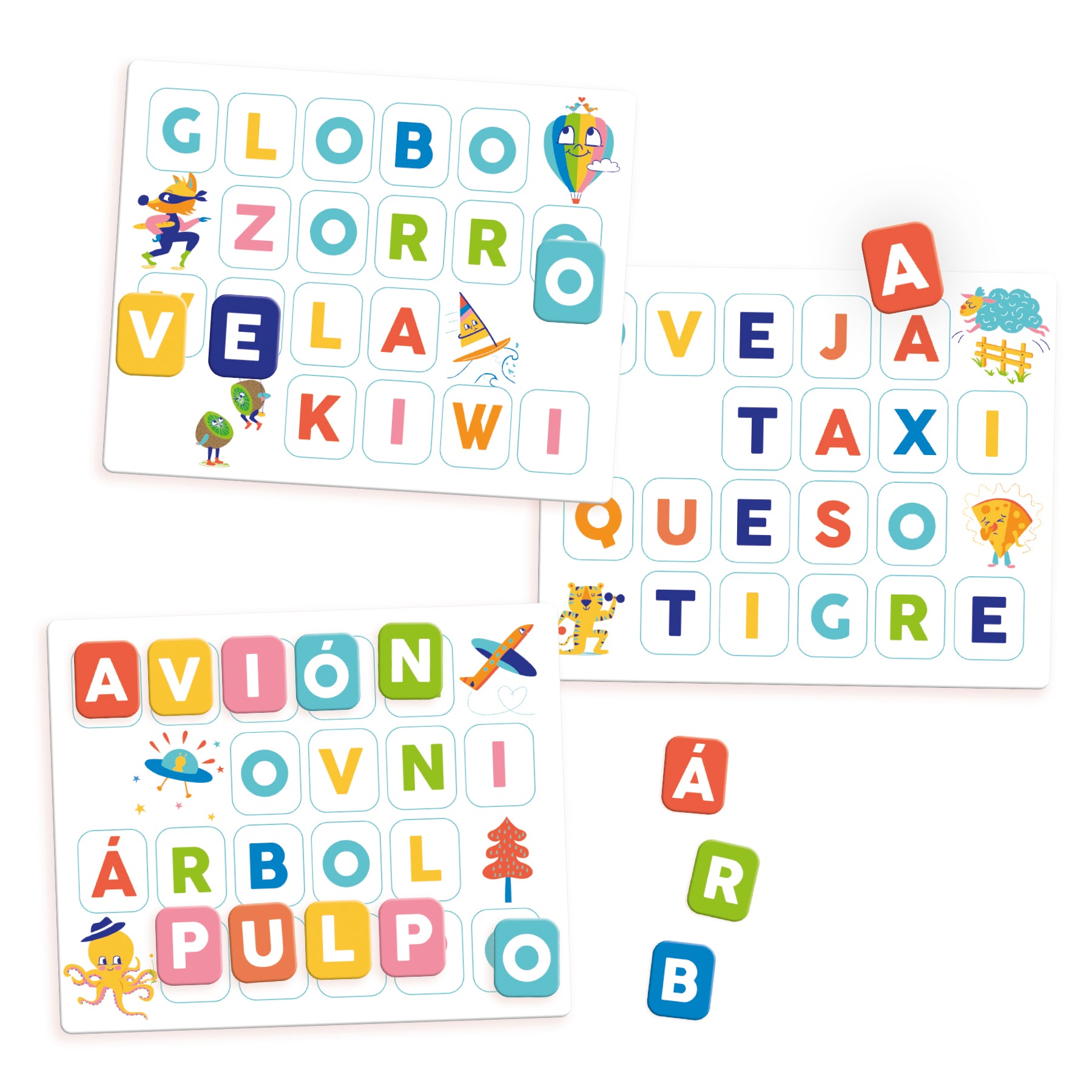 Este set educativo está diseñado para niños de 5 años en adelante para comenzar a formar y deletrear palabras de una manera divertida y práctica. Usando fichas de letras brillantes y tableros ilustrados de palabras, los niños refuerzan su conocimiento del alfabeto y la conexión entre letras y sonidos. Las actividades están estructuradas en niveles progresivos de dificultad, ayudándoles a desarrollar gradualmente habilidades de lectura y ortografía a su propio ritmo. Gracias a su formato autocorrectivo, los niños pueden comprobar sus respuestas de forma independiente, aumentando tanto la confianza como la autonomía. A lo largo del proceso, también fortalecen su vocabulario, conciencia fonémica y coordinación motora fina mediante un juego atractivo y con propósito.
