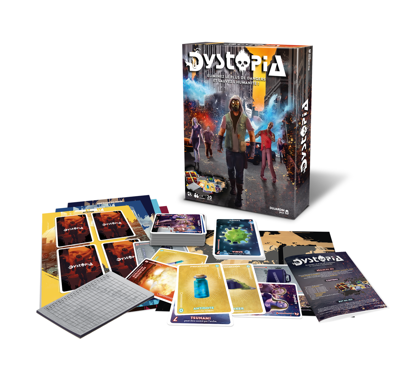 Dans Dystopia , zombies, tsunamis, virus, explosions atomiques menacent tous les continents. Qui parmi vous, réussira à éliminer le plus de dangers possibles de son continent pour sauver l’humanité ?