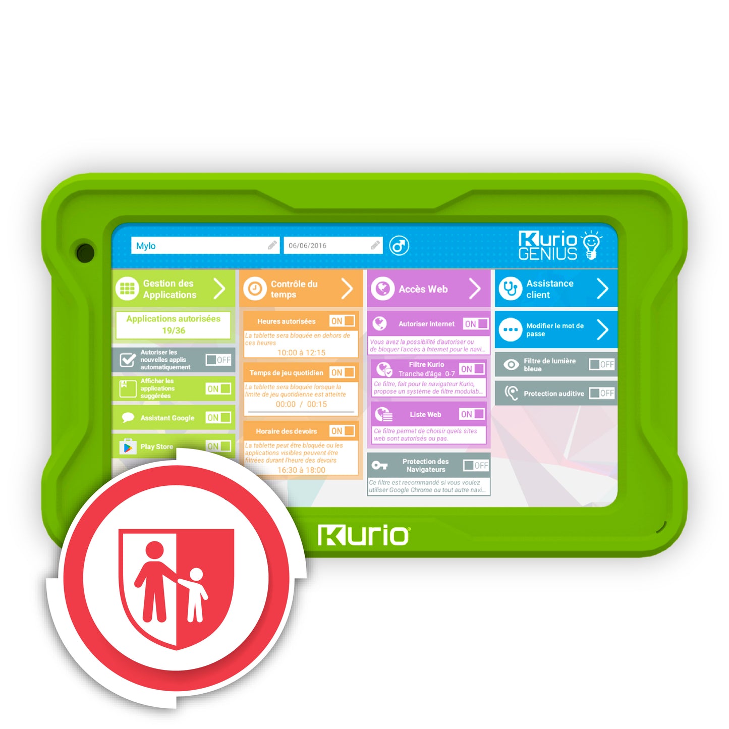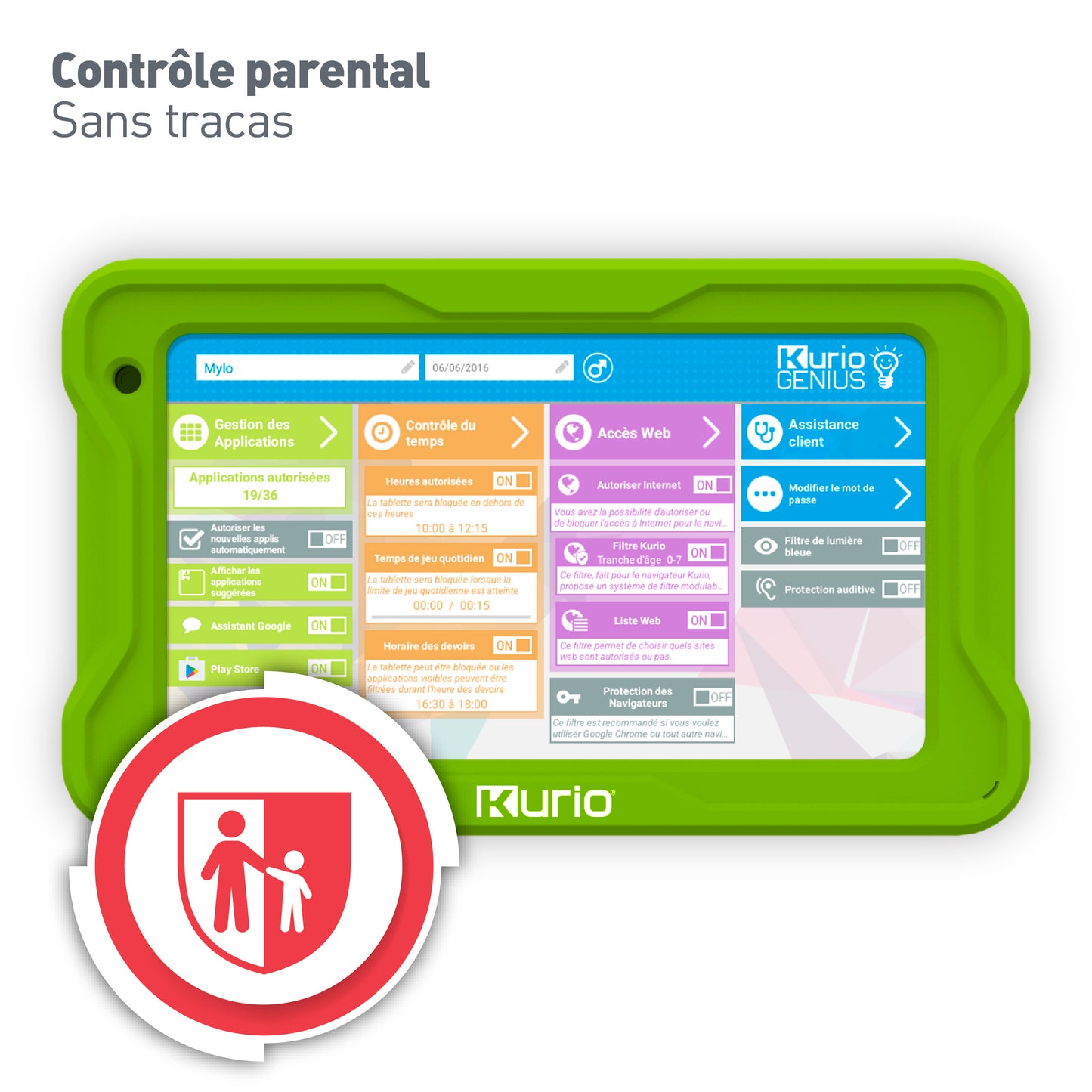 Spécialement conçue pour les enfants, la tablette Gulli Kurio est dotée d’un écran tactile7", 32 GO de mémoire extensible jusqu’à 128 GO, d’un processeur quadcore qui exploite Android 13. Elle intègre : - un contrôle parental simple d’utilisation et d’un navigateur web sécurisé qui filtre les pages automatiquement en fonction de l’âge de l’enfant. - un filtre de lumière bleu qui réduit la fatigue oculaire numérique. - une protection pour les oreilles avec un limiteur de volume en cas de port de casque. Grâce à Kurio Gulli, votre enfant pourra apprendre et se divertir avec plus de 100 applications. * L'estimation de la durée de la batterie en regardant des vidéos est d'environ 4 heures avec un temps de recharge compris entre 2h30 et 3h. L'adaptateur n'est pas fourni