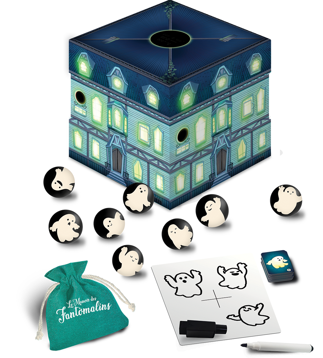 Players must find the 3 ghosts who escaped during the night and bring them back to their manor before they wreak havoc in the village. This cooperative game tests the team spirit and observation skills of the players, who will have to identify, draw and find the three escaped ghosts by observing those still present in the manor.