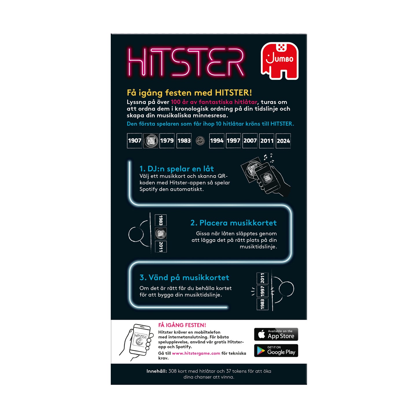 300 music cards, 37 hitster tokens, free Hitster app