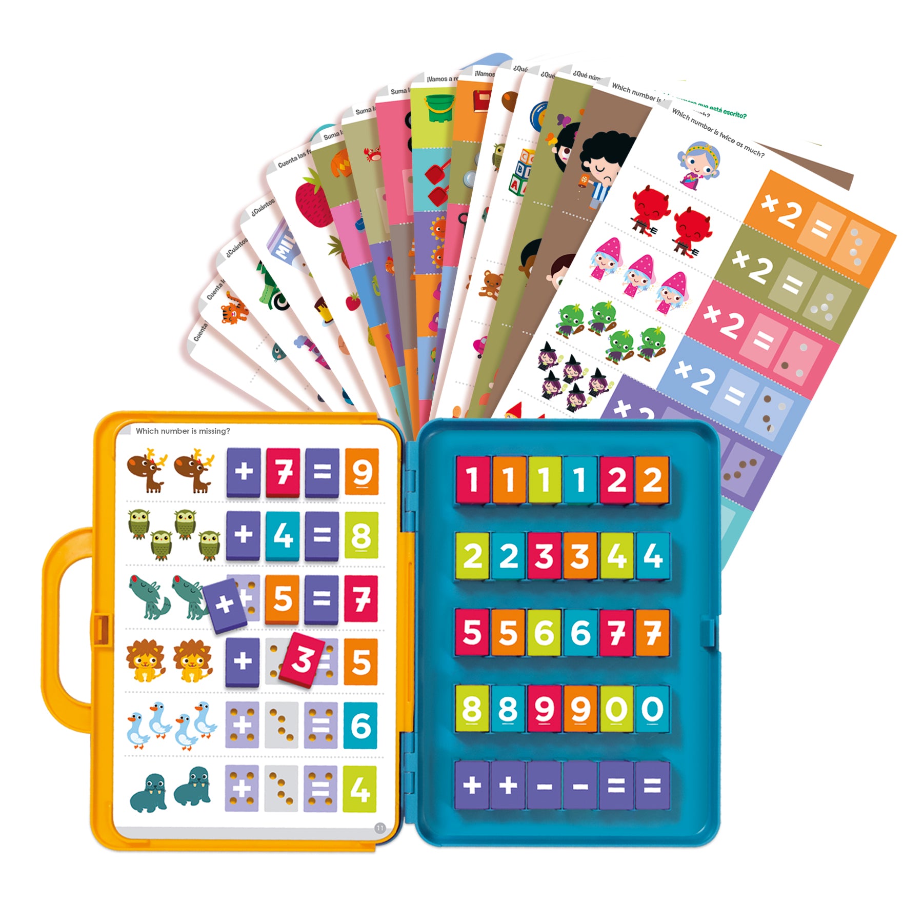 This educational toy with which your child will learn to count, add and subtract is part of a complete and popular line of educational briefcases with different school activities with which your child will learn and practice reading, composing words, separating them by syllables, vocabulary in English, perform simple operations ... An ideal school reinforcement for children from 5 years old, now with new content, new illustrations and new design! The child will be able to practice with the 15 pictures contained in the game and perform up to a total of 83 operations. It is an ideal toy for learning the first mathematical operations and will help you develop your calculation ability. Without realizing it, you will learn by playing all the concepts and having a great time! Thanks to its self-correcting system, only the card with the correct number or sign fits into the gap of the result of the operation. This will allow the child to check him only if he is right. The briefcase turns this educational toy into an ideal product to store the chips and so that they do not fall, transport it, store it and use it as a game base. A school reinforcement for children from 5 years old. The child will start in his first mathematical operations. The game has a self-correcting system that allows the child to check if he is correct.