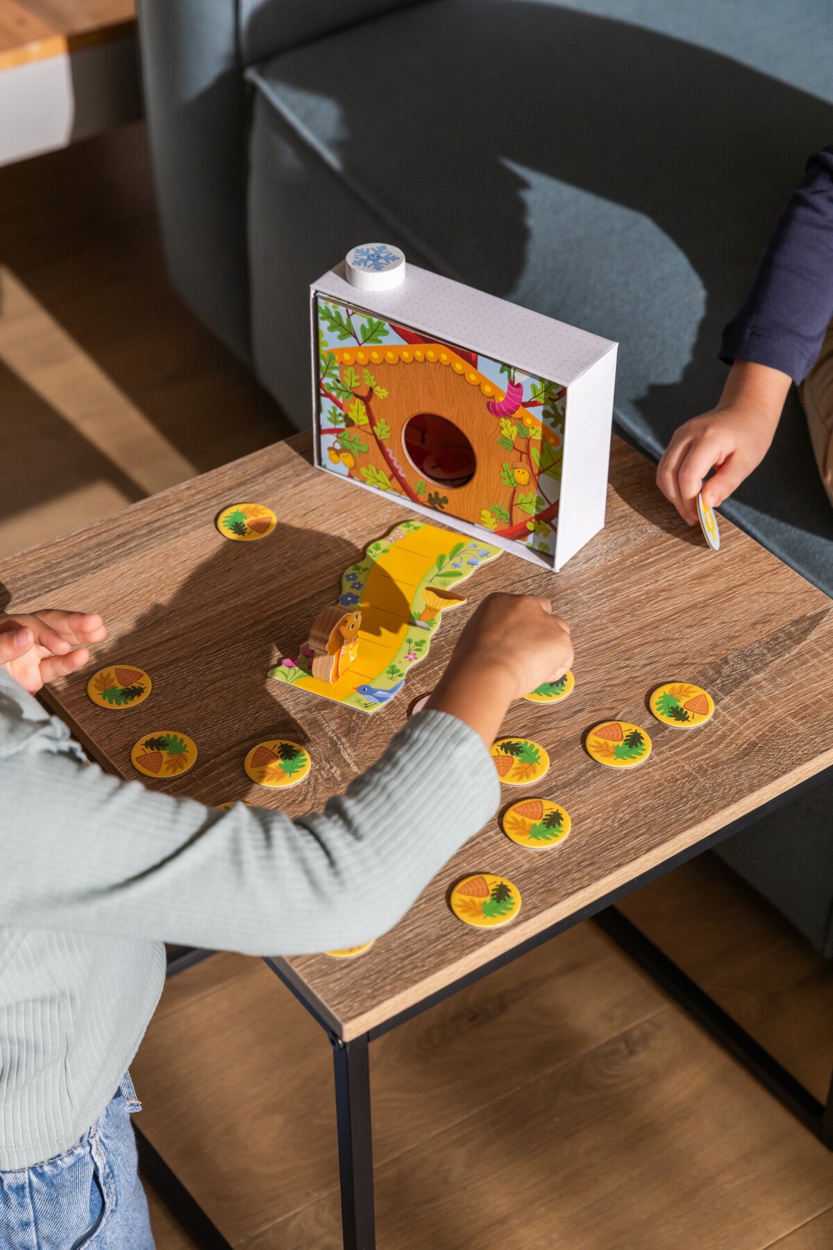 In this cooperative game, players join forces to help the squirrel gather food and store it safely before winter arrives. The objective is to collect all the necessary items before the snow reaches the end of the track. As they play, children develop important skills such as cooperation, turn-taking, memory, and strategic thinking.